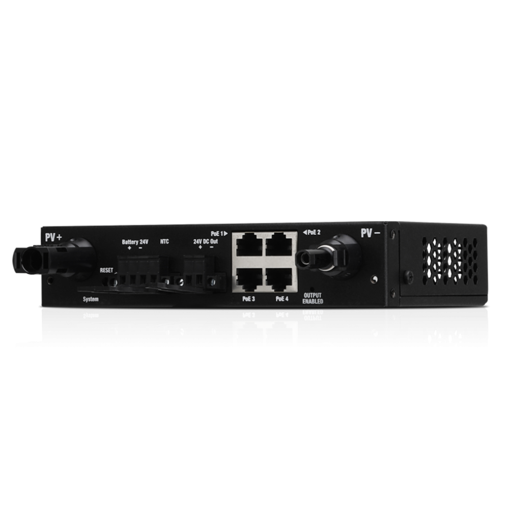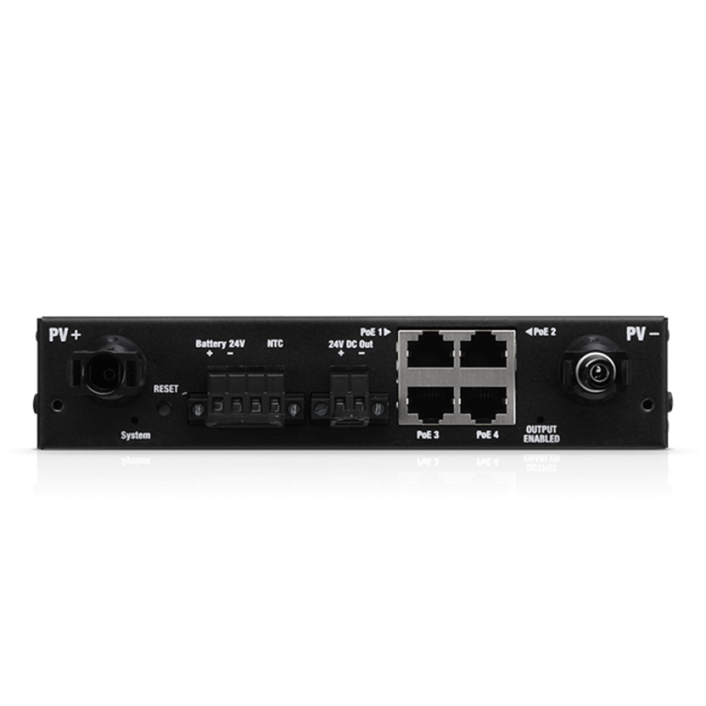 Кроме своих основных функций, коммутатор SunMAX SolerSwitch 40W также выступает как источник питания для солнечных панелей – с этой целью в сетевой инетрфейс было включено 4 порта Ethernet с поддержкой PoE. 24V. Также следует отметить наличие отдельного входа рассчитанного на ток мощностью до 40W
